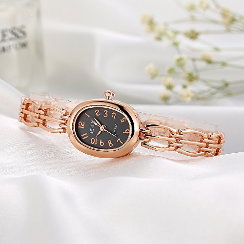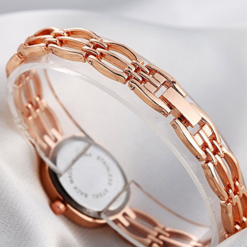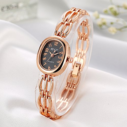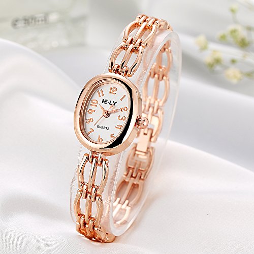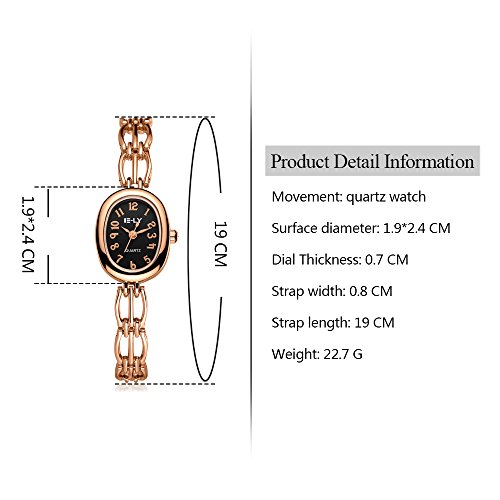 -. Feature : 19*24mm oval watch case with full Arabic numbers display / 0.31 inch wide, 7.48 inch metal bracelet with jewelry buckle / Analog quartz movement for time-keeping / Best gifts for women/girls in Christmas, birthday, Valentine's Day, wedding etc. / 30m water resistant, withstands for hand and face washing, not suitable for diving, bathing, swimming