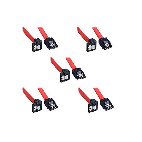 (5 x Sata 3 Data Cable) SATA III (SATA 3) cable (40cm) with Locking Latch straight to Right Angle 90 Degree | compatible up to S-ATA/600 | 1,5GBs/3GBs/6GBs (backward compatible) - Red