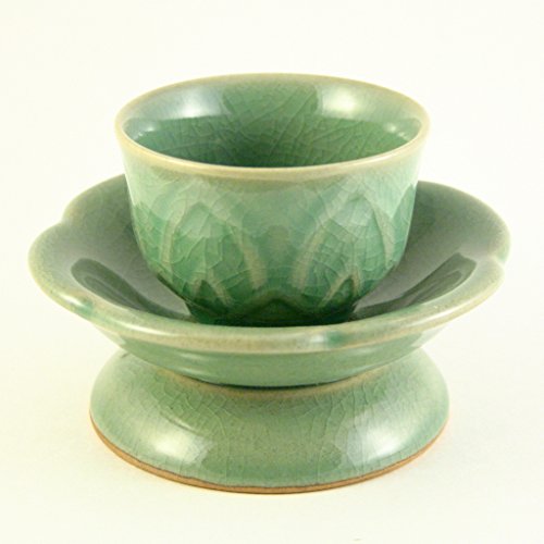 -. Title : Celadon Teacup with Holder Korean Celadon Tea Ceremony
