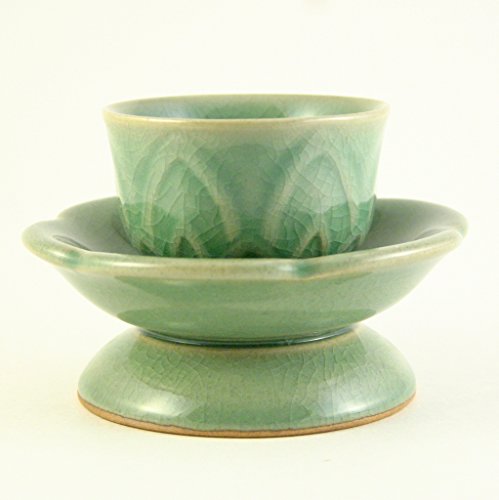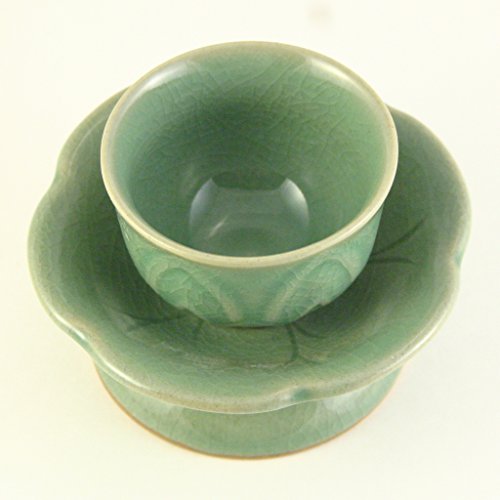 -. Feature : Lotus flower shaped tea cup and holder / tea ceremonial style elegant celadon teacup / Size: cup : 7.5 cm * 4.8 cm, holder : 12 cm * 4.5 cm