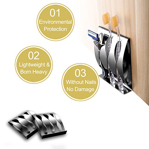 Size: 5.5"(H) * 4.5"(W), adhesive wall toothbrush holder,toothpaste holder,bathroom shelves,install without drilling or hurting wall