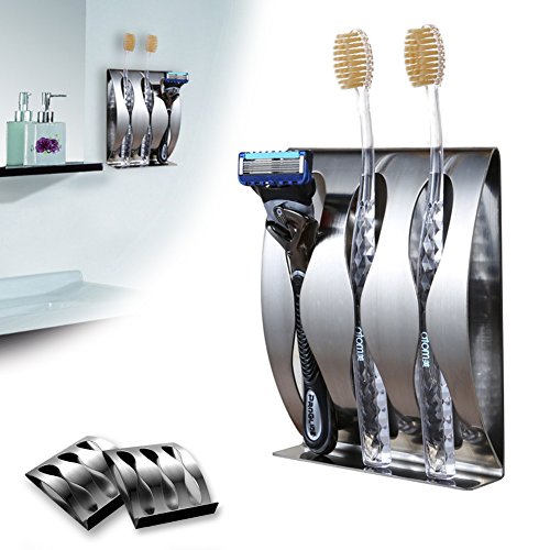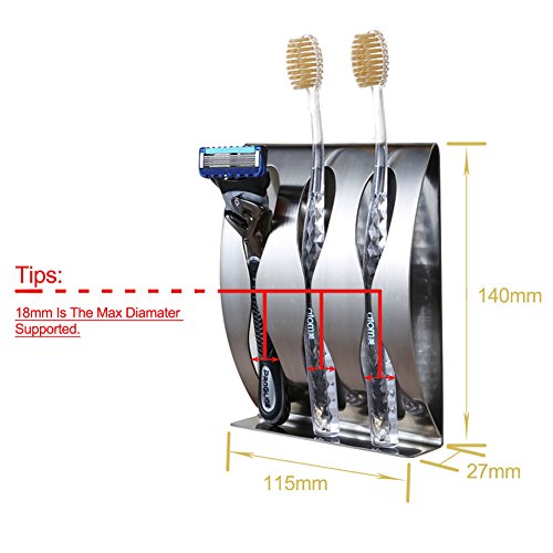 3 toothbrushes position.Hole diameters:0.7 inches,it will comfortably fit wide (rubberized handles) and narrow toothbrushes or Razor.