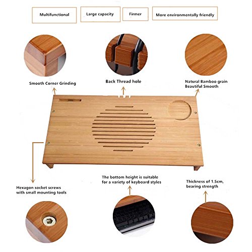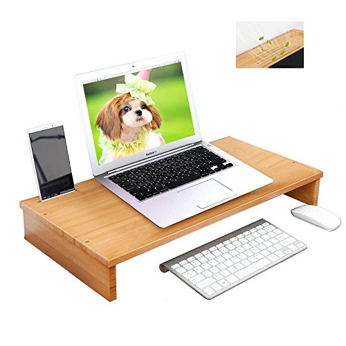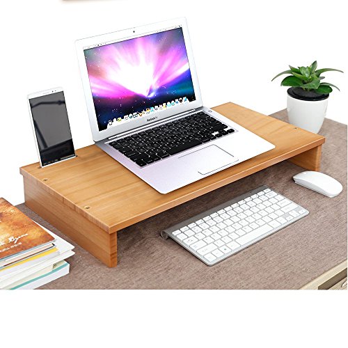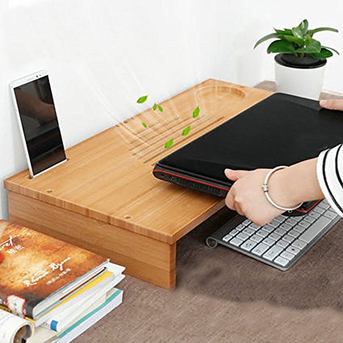 -. Feature : MONEY BACK GUARANTEE. We take P.R.Ide in the quality of our Bamboo Monitor Stand and this is why we back it with 100% Money-Back guarantee! Buy with confidence and enjoy the convenience and functionality of a Monitor Riser! If you are not absolutely thrilled at it, we will fully refund you, NO QUESTIONS ASKED! / BAMBOO MONITOR STAND: Finished by eco-friendly and sturdy bamboo board, its regular weight capacity is up to 80lbs. Load better than plastic stand, not easy to break like glass ones. / EFFECTIVELY MONITOR RISER: Elevate monitor up to eye level for comfortable, ergonomic viewing experience. Make you get free from tension headaches or eye and neck strain from looking down on your computer screen while improving computer's ventilation. It is also suitable for putting TV, P.R.Inter, cellphone, laptop, etc. / PERFECT DESK ORGANIZER: Have various holding slots for cell phone, cup, papers, stapler, clips and other everyday office supplies and allow you to slide your keyboard and mice under the stand to get your desktop space back. / SIZE:60*29*8.5CM (23 3/5*11 4/5*3 3/10inch)