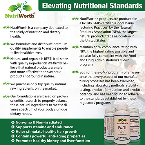 ✔All-Natural Herbal Supplement (Non-irradiated & Non-GMO): Our Fo-Ti is simply cleaned and dried, uncured and unprepared. Steam sterilized if required. Checked for a variety of impurities including microbiological and heavy metals in advanced labs. Tested FREE of Mold, Yeast, Bacteria, Heavy Metals, Chemicals & Pesticides. You can be sure you are only putting natural ingredients in your body with NO artificial fillers.
