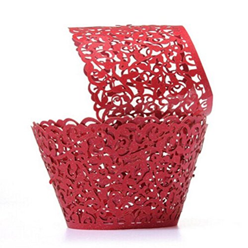Tinksky 50pcs Cupcake Wrappers Bake Cake Paper Cups Baking Cup Muffin Case Trays for Wedding Party Birthday Decoration Baby Shower Wrap (Red)