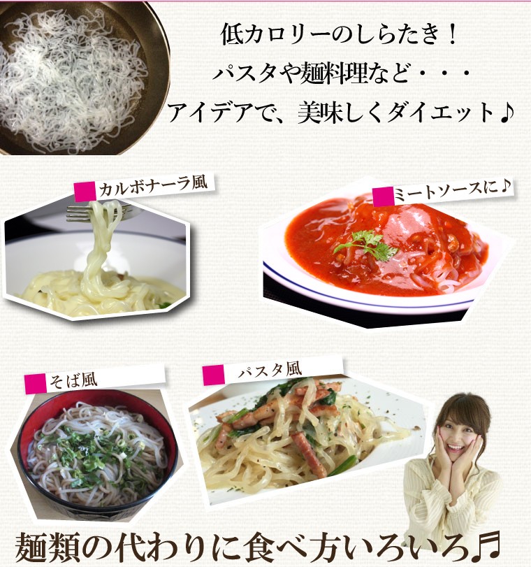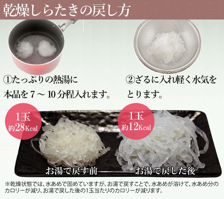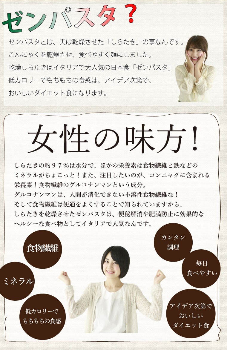 ※入荷状況により1週間程度お時間をいただく場合がございます。こんにゃくを乾燥させ、食べやすく麺にしました。実は、乾燥しらたきはイタリアで大人気の日本食「ゼンパスタ」低カロリーでもちもちの食感は、アイデア次第で、おいしいダイエット食になります。