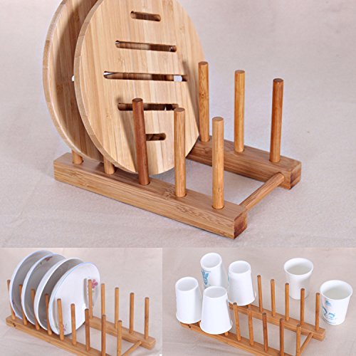 -. Title : Bamboo Dish Rack Dishes Drainboard Drying Drainer Storage Holder Stand Kitchen Cabinet Organizer for Dish / Plate / Bowl / Cup / Pot Lid / Book
