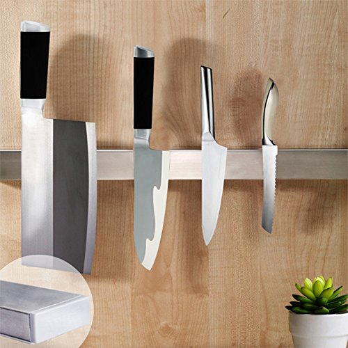 • Ouddy magnetic knife storage strip is used to hold securely your knifes. And the powerful magnets will help keep sharp knives out of reach of children. Use this magnetic holder in the kitchen, , laundry room, office or garage to hold any metal objects.