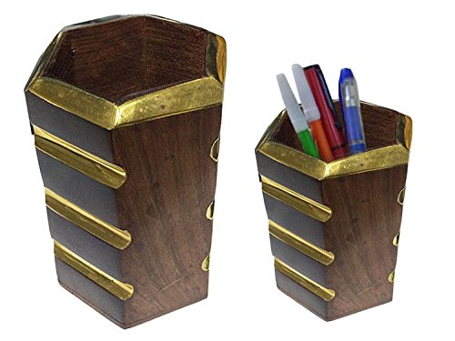 Valentine Day Special Gift, Wooden Pen Holder, Pencil Holder, Pen Stand For Office, Pen Stand For Desk, Brush Holder, Strip Inlay Work, Brown Color Size 4 X 2.5 Inch