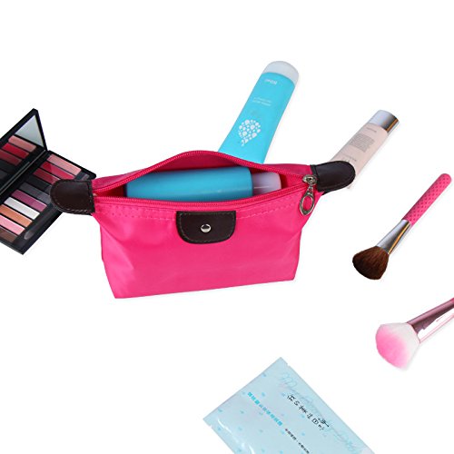 3pcs Waterproof Nylon Cosmetic Bags-Portable Makeup Bags-Travel Organizer-Toiletry Pouch-Purse with Zipper-Clutch Bag for Women and Girls: Rose...