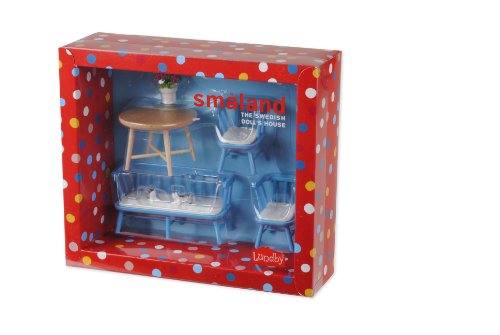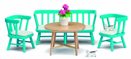 -. Feature : Add the Lundby Smaland Kitchen Furniture Set to your doll's house, and invite your dolls to breakfast or a casual meal / Give your kitchen a fresh, trendy look with this brightly colored bench sofa, 2 matching chairs and round, natural wood table / Also includes 3 cushions, 2 kittens and a potted geranium / Meticulously crafted to a 1:18 scale, suitable for dolls around 4" tall / Lundby doll house, dolls and other accessories are sold separately
