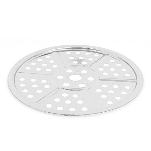 • Home kitchen silver tone stainless steel steamer rack, features round shape, perforated hole design.
