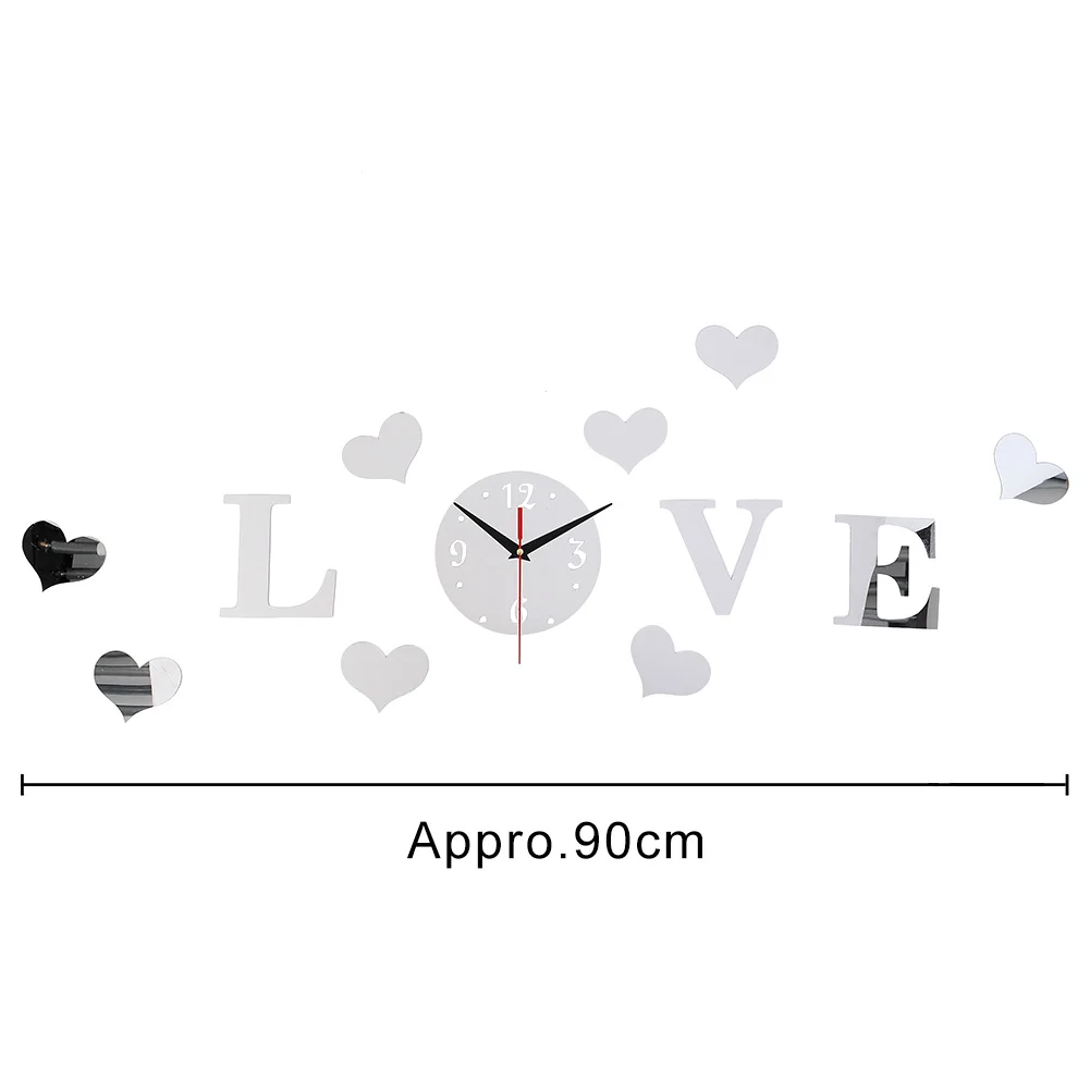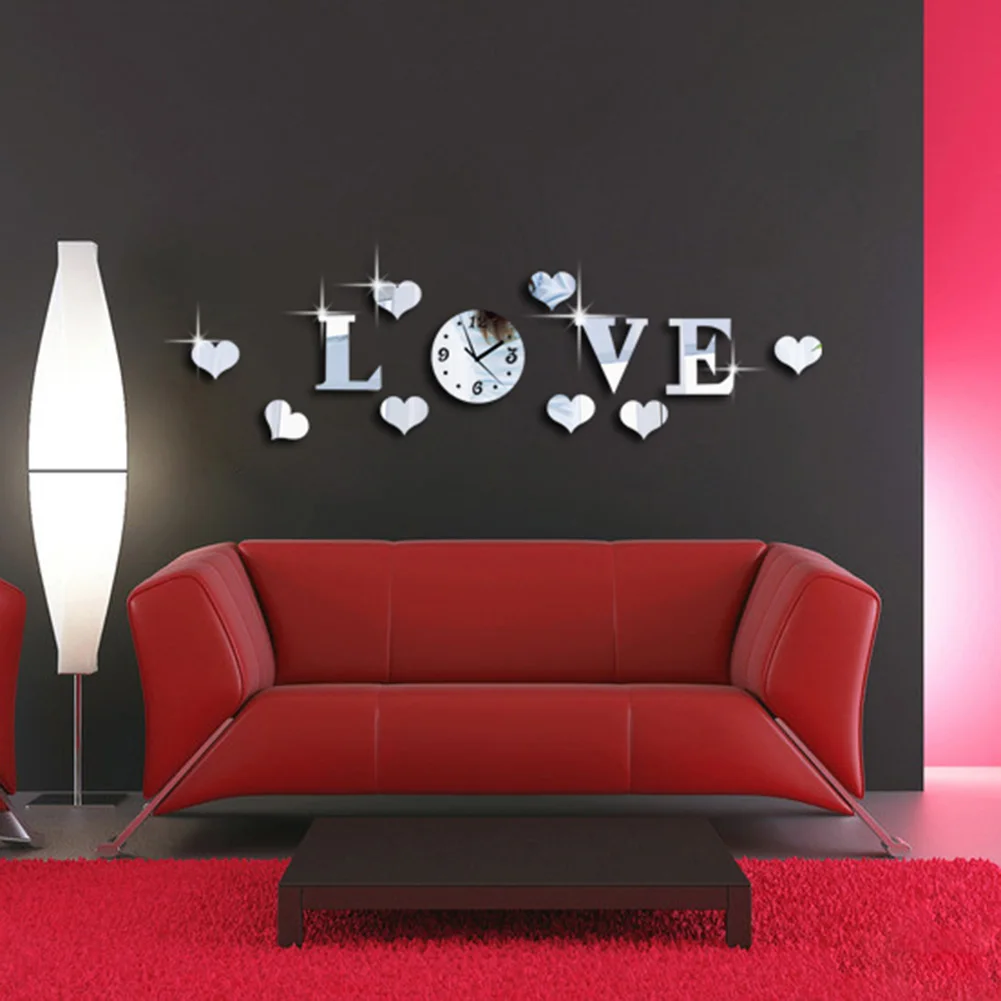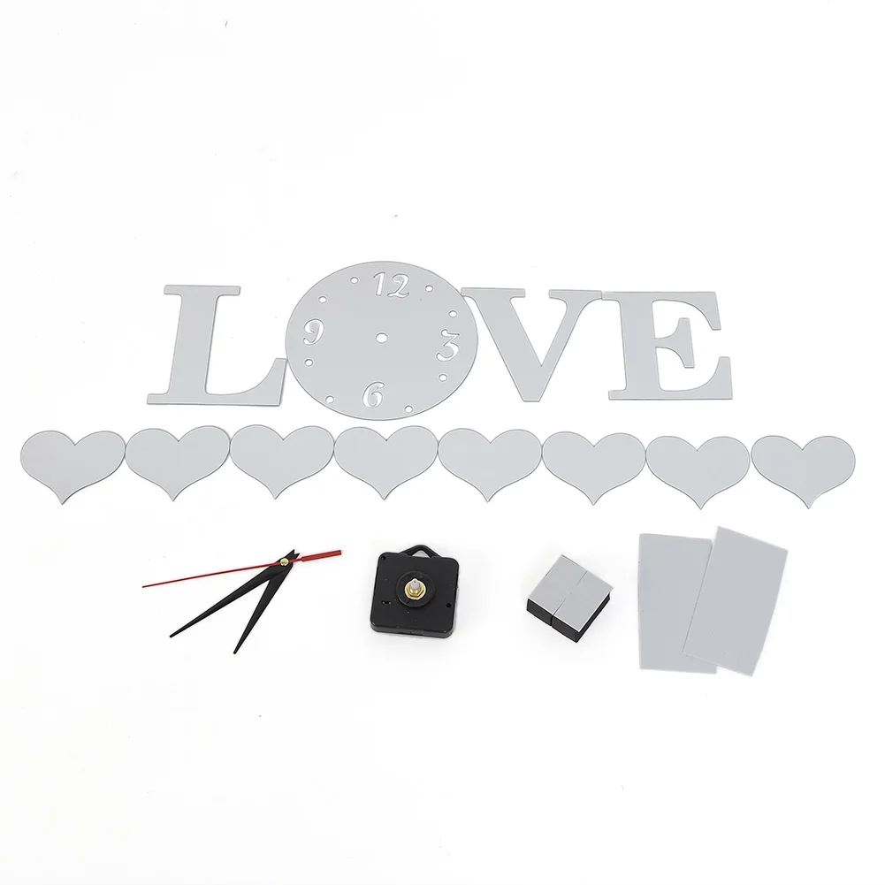 New Creative Silver Color Acrylic Mirror Effect LOVE Letter Decal Wall Sticker Clock Mechanism Home Decoration Adesivo De Parede