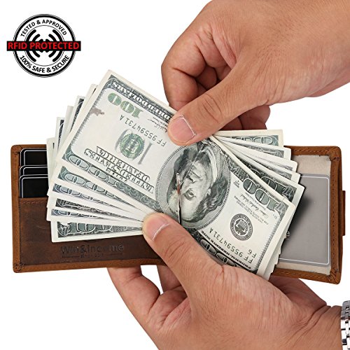 -. Binding : Apparel -. Brand : Win&Income -. Color : Brown -. Department : mens -. IsAdultProduct : 0 -. ProductGroup : Apparel -. ProductTypeName : ACCESSORY -. Title : Win&Income RFID Blocking Slim Wallet with Money Clip,Genuine Leather Bifold Thin Minimalist Front Pocket Wallets for Men