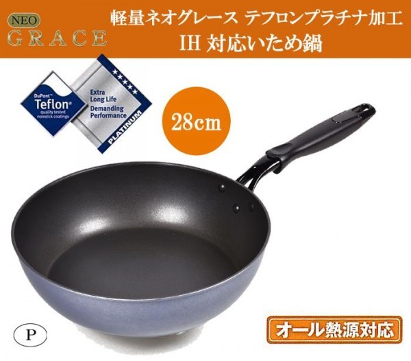 | 素材・材質 | 表面加工/内面:ふっ素樹脂塗膜加工、外面:焼付け塗装 本体:アルミニウム合金 はり底:ステンレス鋼(クロム16%) 取っ手:フェノール樹脂(耐熱温度150度) |