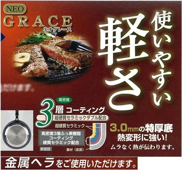 金属ヘラ使用OK!!熱変形に強く、ムラなく熱が伝わります。オール熱源対応。 |