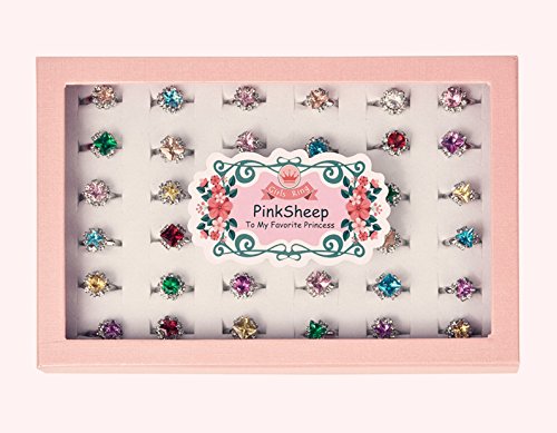 (PinkSheep)/Pretend Play Dress-up/Beauty Fashion/DIRECT FROM USA/PinkSheep Princess Colorful Rhinestone Rings , 36PCS, Sparkle Adjustable, Girl Pretend Play and...