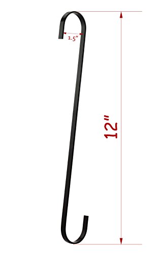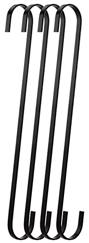 RuiLing 4-Pack 12 Inch Black Chrome Finish Steel Hanging Flat Hooks - S Shaped Hook Heavy-Duty S Hooks, for Kitchenware, Pots, Utensils, Plants, Towels, Gardening Tools, Clothes