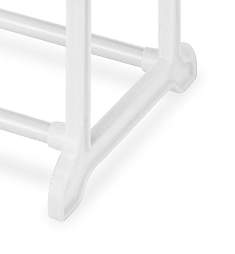 This 20 pair shoe rack is made with a durable white resin frame and requires no tools to assemble. It fits under most hanging clothes and is perfect in your home, office or dorm room.