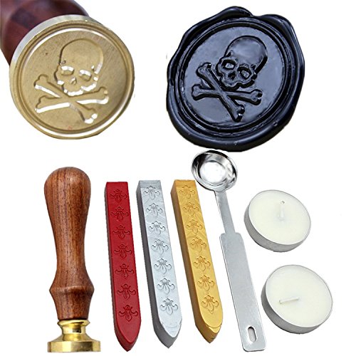 FQL Skull Vintage Rosewood Wax Seal Stamp Set With Gold Red Silver Sticks