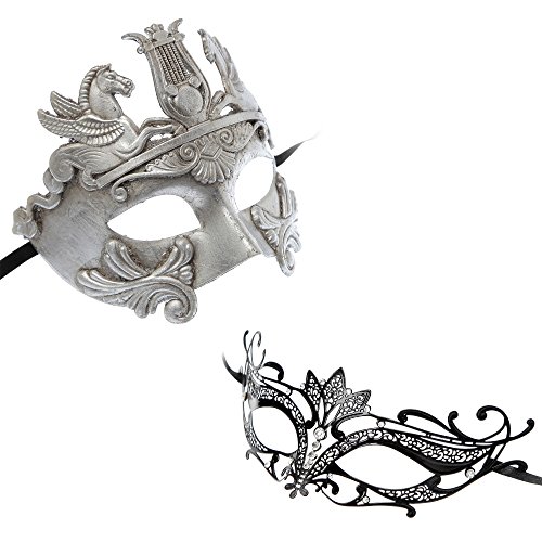 -. Title : Roman Greek Emperor with Pegasus Horses Metallic Silver Couple Mask Sets