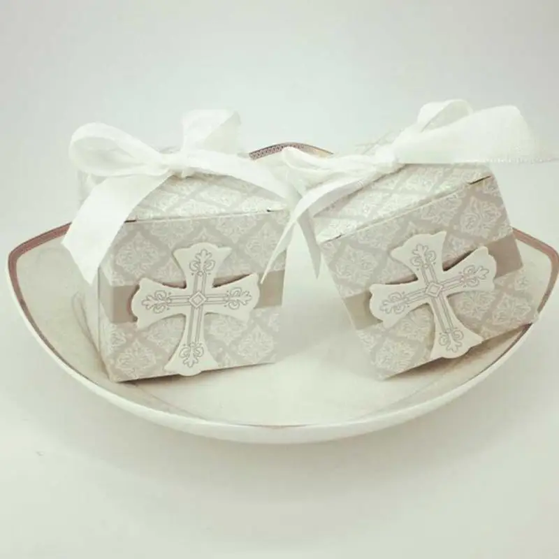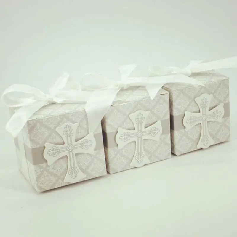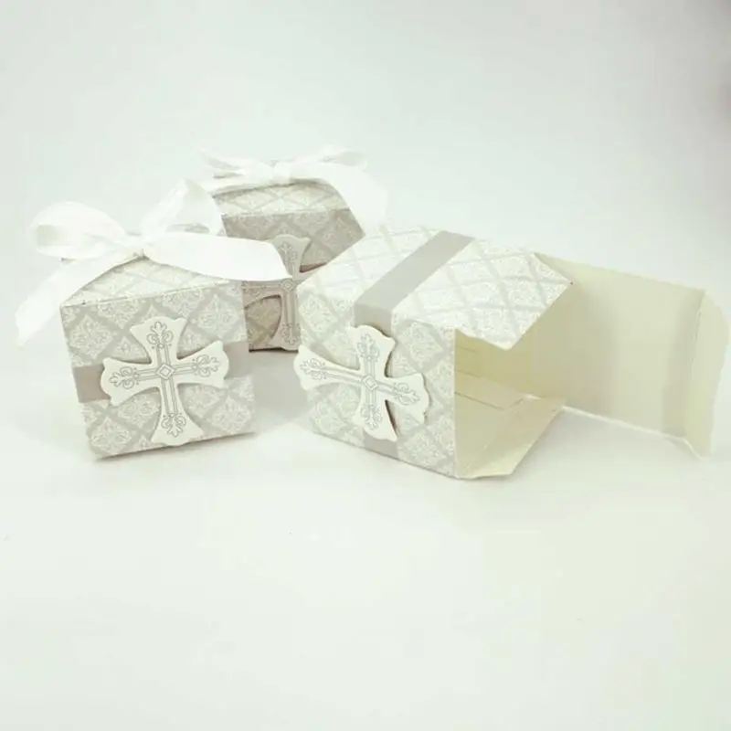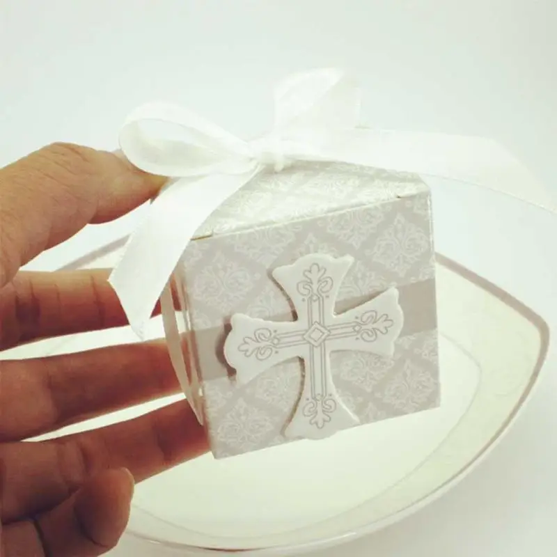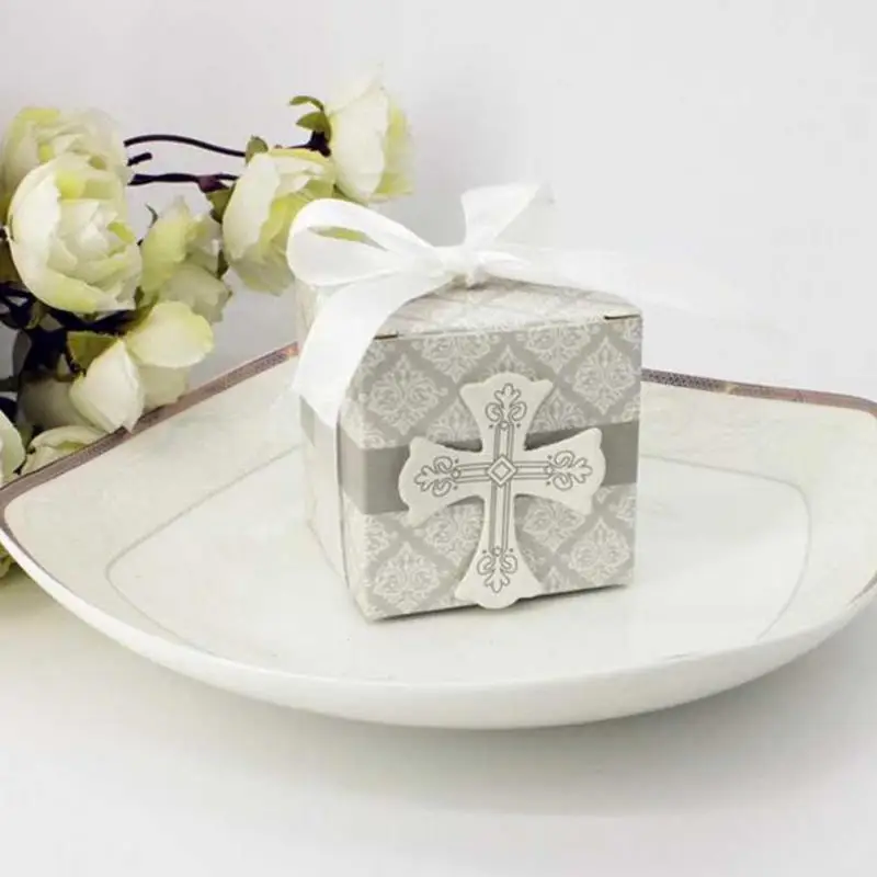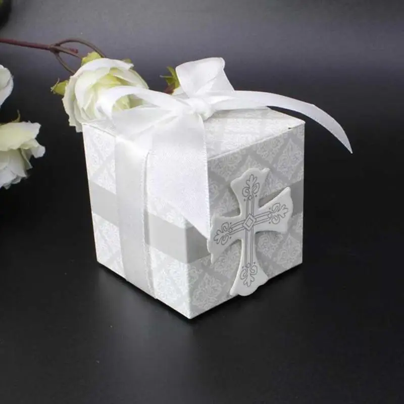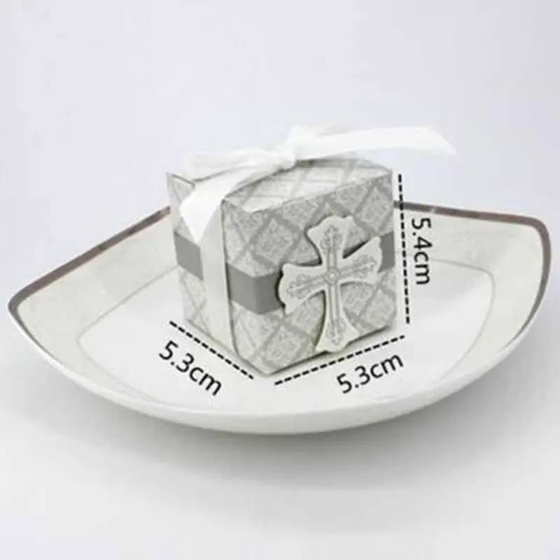 5 Pcs Wedding Cross Pattern European Square Candy Box Creative Cross Pattern Candy Box Wedding Party Gift Candy Case A40