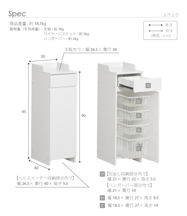 サイズ(cm):幅30x奥行40x高さ95cm・約18.7kg