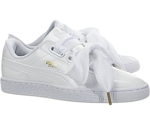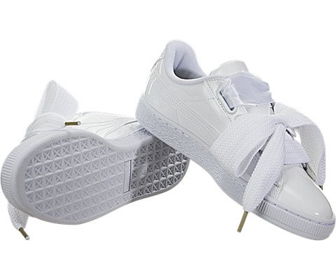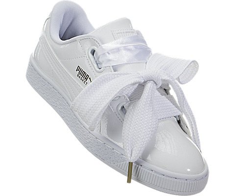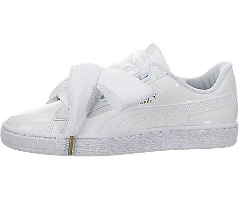 PUMA Women's Basket Heart Patent WN'S Sneaker, Puma White-Puma White, 7.5 M US