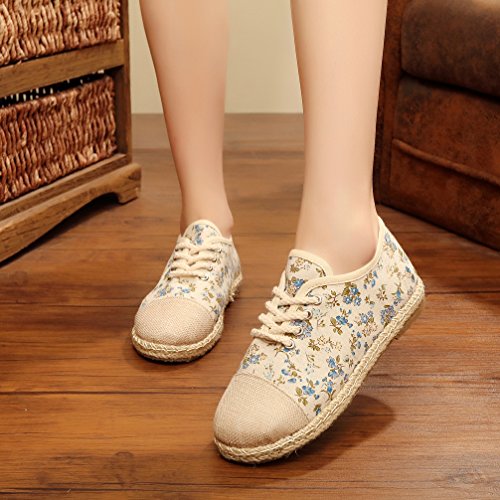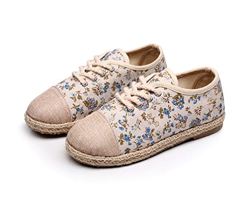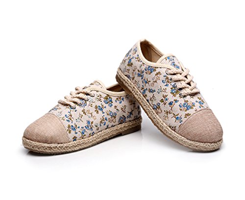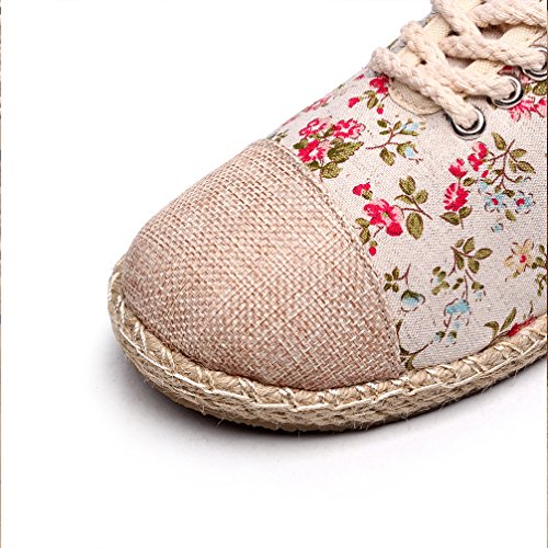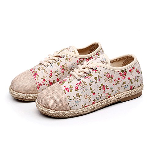 Product Description The floral pattern can shows your youth no matter what age you are. Traditional lacing closure with metallic eyelets is designed for secure fit. Canvas lining and Canvas upper are considerate designs for beatifying and securing the whole shoes. Anti-Slip Rubber Sole can protect you from slipping in any time and less your awkward moods. Sophistication with down-to-earth appeal means that these shoes are made to be lived in. This pair of shoes always keeps an emphasis on comfort. Each pair of this type of shoes is an affordable luxury that cleverly combines a youthful outlook with a worldly sensibility. Espadrille is a type suitable for the most people. It can go under every outfit, can be worn under a blouse or as an item by itself, not making you get overheated, is perfect for summer and dresses. You can also match it with a stylish jacket, boots, heels when wear it going out according your clothes styles.