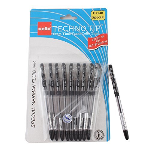 1 X 10 Cello Technotip PEN Top Ball Point 0.6 mm Smooth Writing Black Brand Ad By Indian Cricketer Mahindera Singh Dhoni Lot of 10 Pens