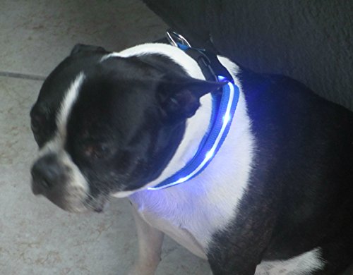 Charge From Any Device! Runs over 8 hours. Track your glowing pet when camping, in the backyard, on evening hikes or when lost at night. Quality Construction! 3 modes (on, strobe, blink). 1" wide high tensile nylon. Any time, any weather, illuminate and protect your canine. Available in assorted colors. Also available is the Blazin' Leash.