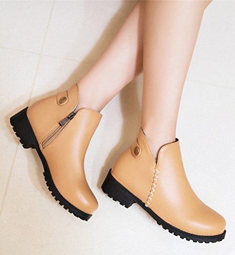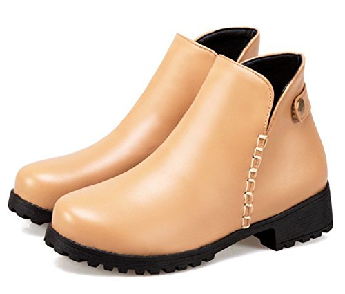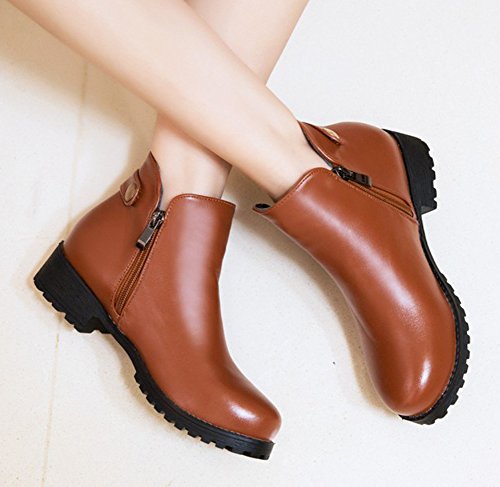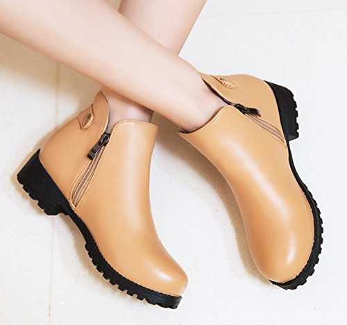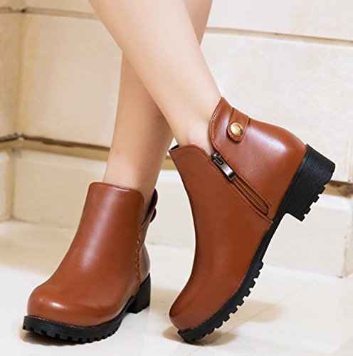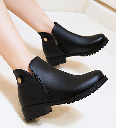 Binding : Apparel Product Description The fall comes, and it is time for elegant women to wear various boots. A pair of suitable boots can add much charm to you. Here is a pair of pretty booties for you. They adopt round toe design, which can embellish your foot type better. The chunky low heels make them very sexy to wear. The zipper closure is so convenient, stylish and artistic. The outsoles are made of rubber, wearproof and non-skid. They have no many decorations, which conveys an idea of simpleness. In addition, they are easy matching. Welcome to choose and buy! Aisun is the legal brand, registered in the United States Patent and Trademark Office. All rights reserved. 0