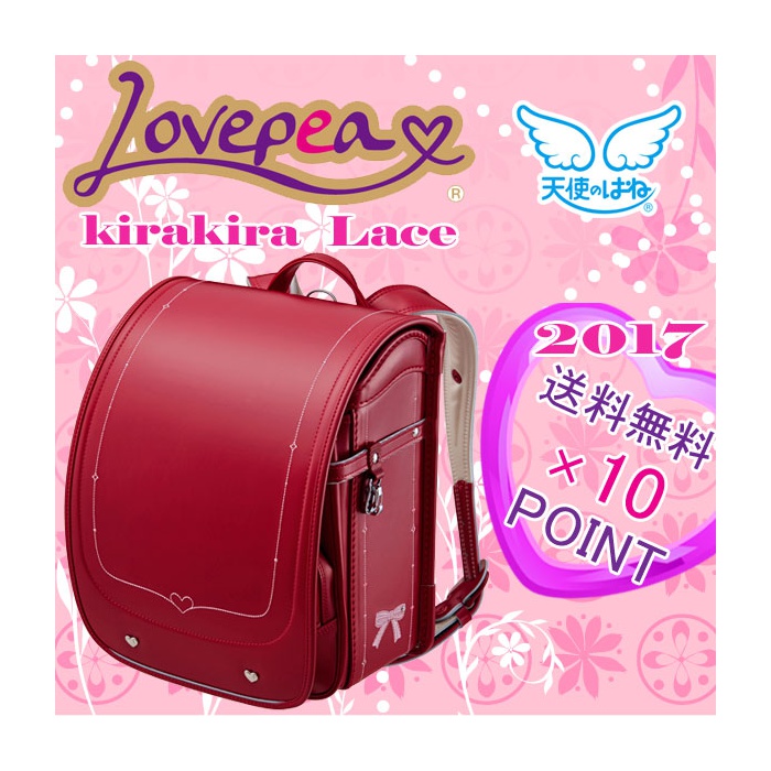 원본상품명: ポイント10倍 セイバン 2017年モデル ラブピ キラキラレ?ス カ?マインレッド LV16G2525 女の子 送料無料 Lovepea Kirakira Lace 天使のはね ランドセル