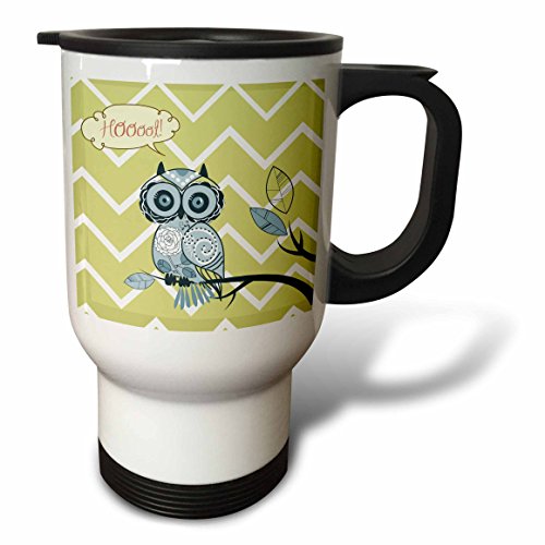 3dRose Hoot I'm Cute Whimsical Owl with Chevron Print Travel Mug, 14-Ounce