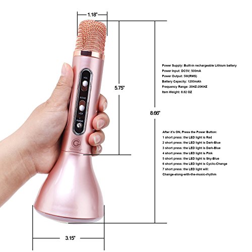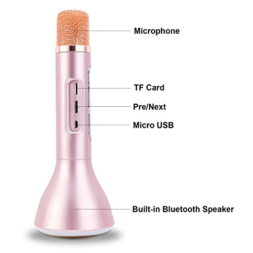 【Mini Bluetooth Karaoke Machine System】Easy-to-Pair this Kids Karaoke Microphone to any IOS/Android Smartphones orTablets & Let Your Child Sing-A-Long with Any Song. There's also an TF Card Slot for Music Playing.Your Child Will Perform Like a Rockstar For Hours of Karaoke Fun!
