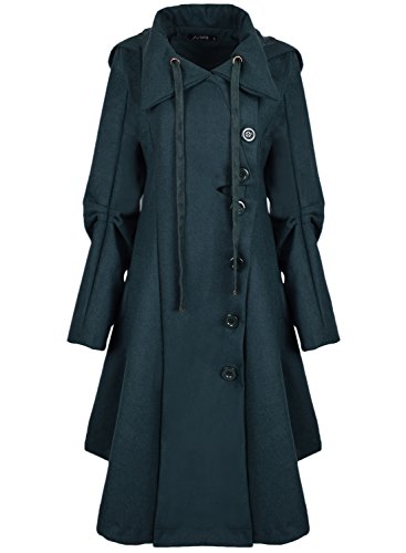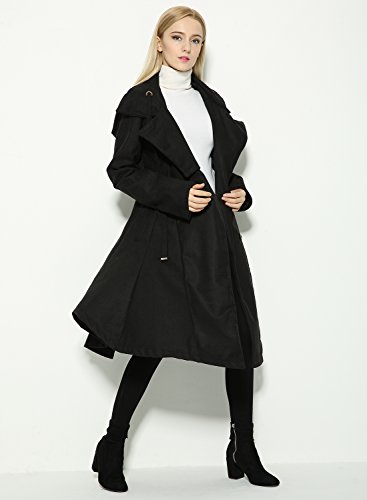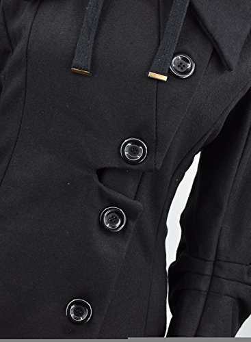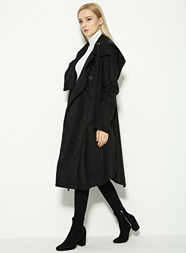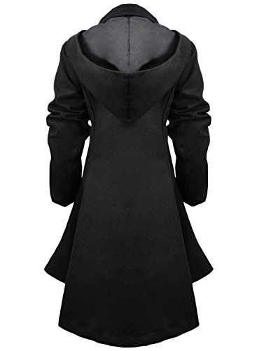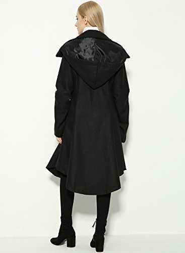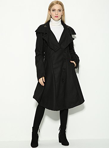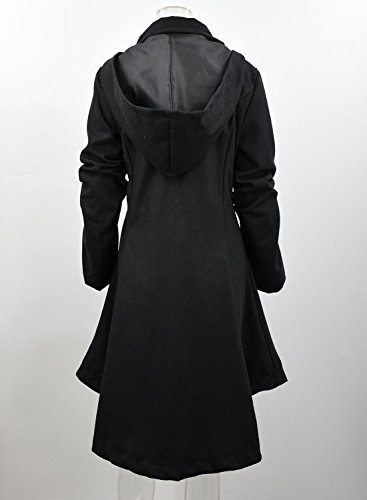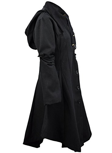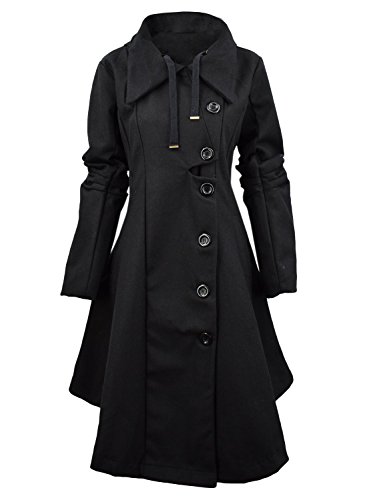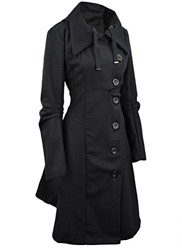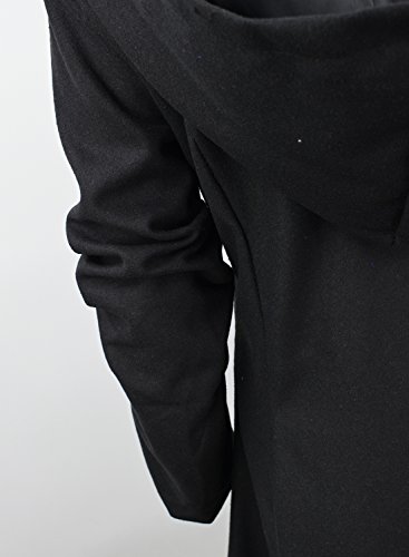 Binding : Apparel Product Description The black coat is featuring long sleeve. Button closure. Asymmetrical hem.