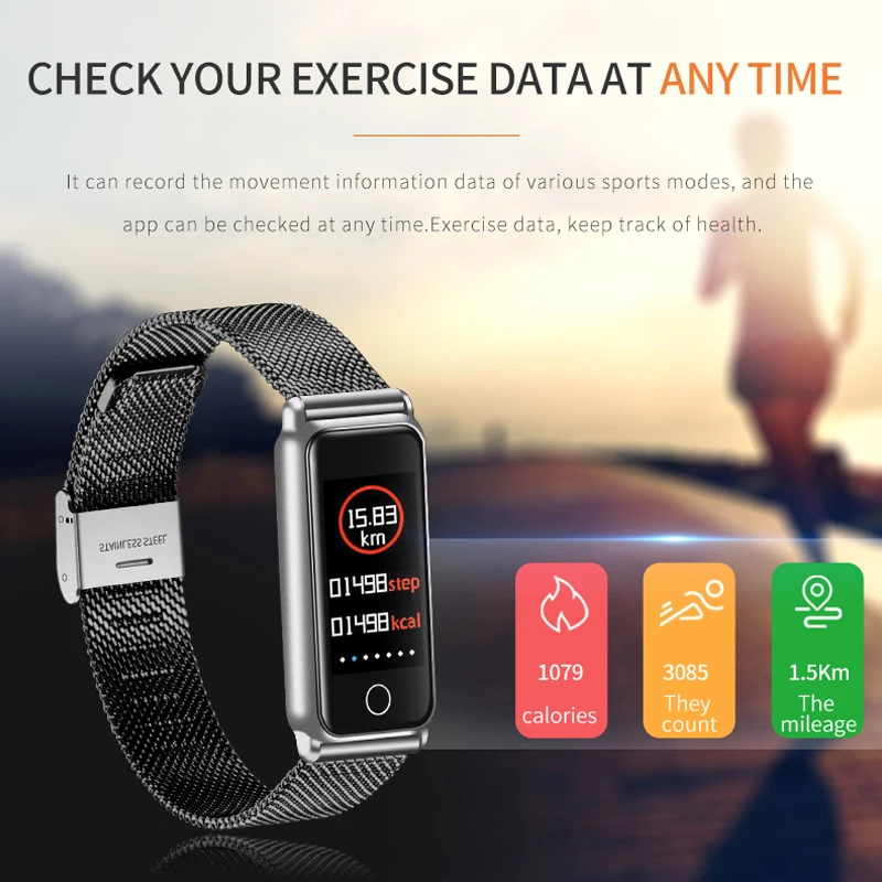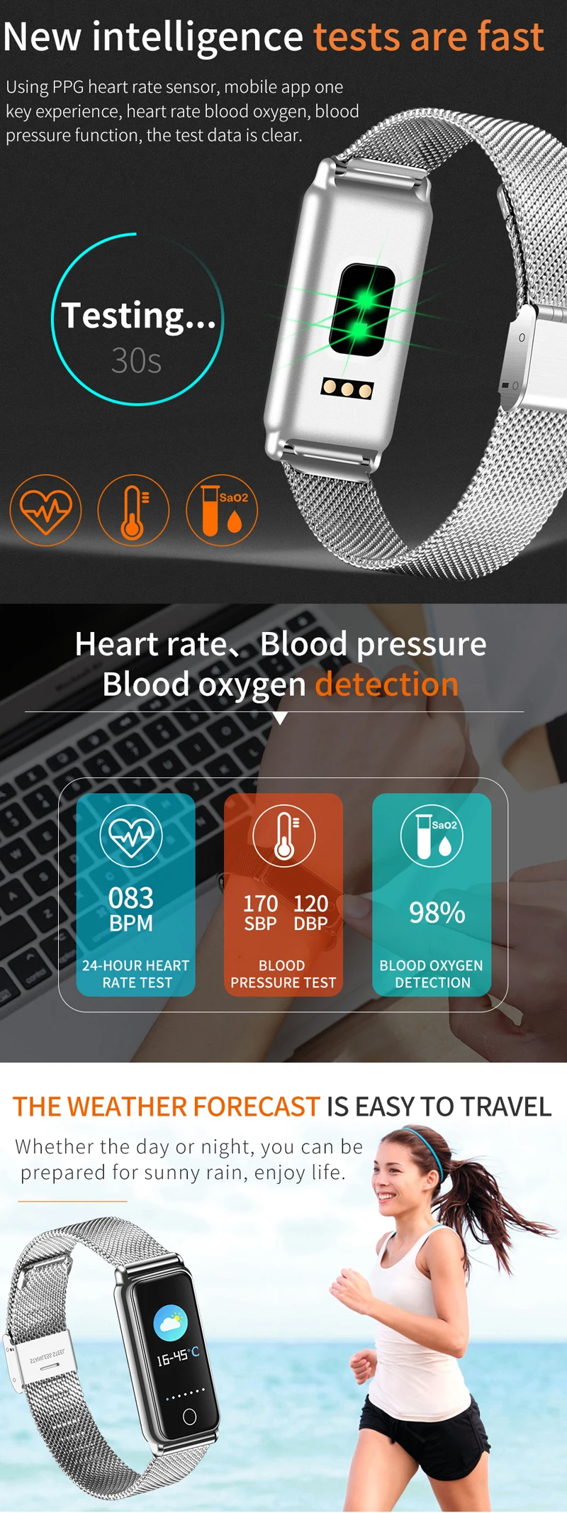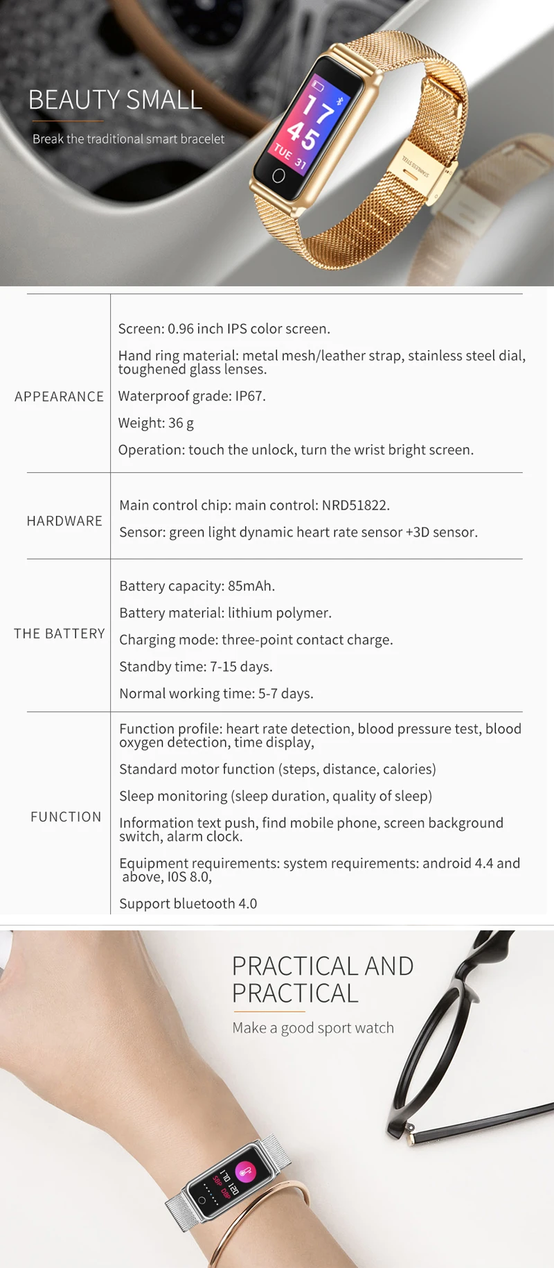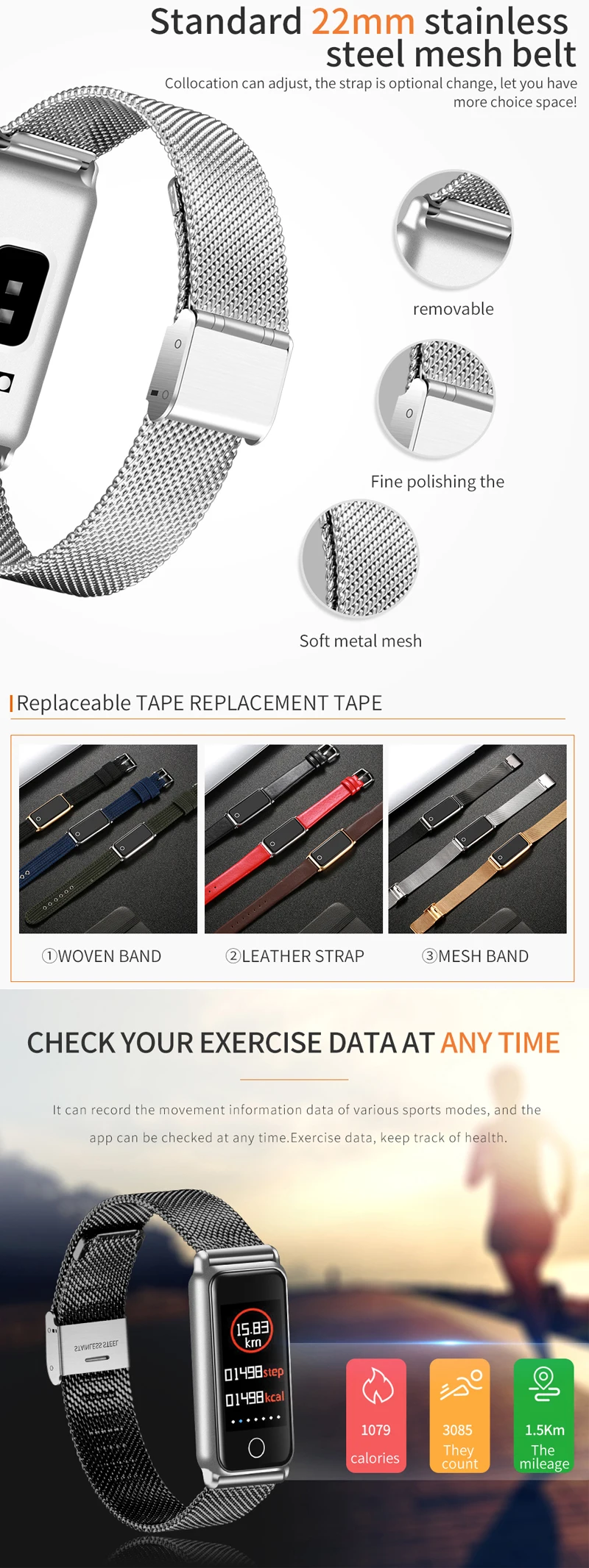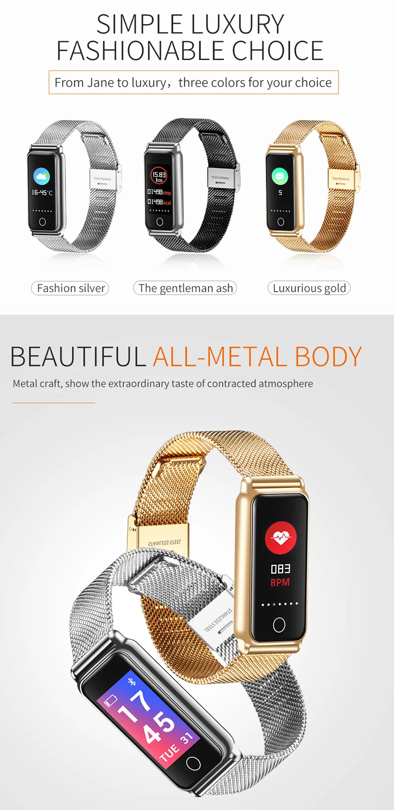 Function:Passometer,Sleep Tracker,Push Message,Heart Rate Tracker,Alarm Clock,Remote Control,Fitness Tracker,Message Reminder,Call Reminder