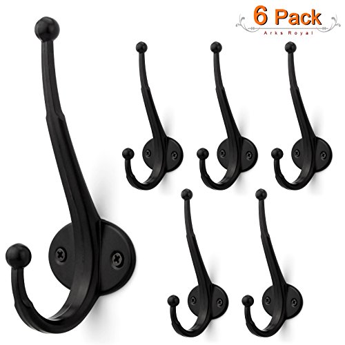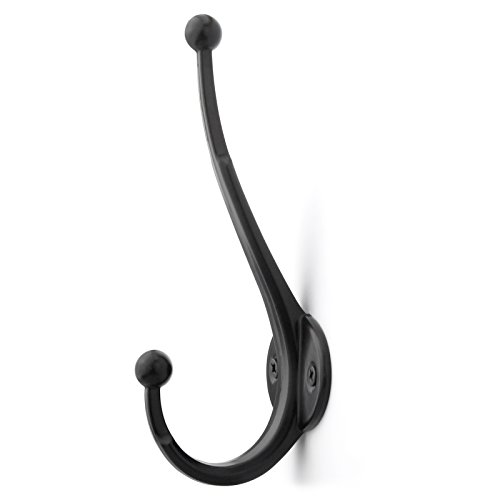 Heavy Duty Metal Retro Prong Coat Hook with Ball Ends, Thick Long Double Hat Hook Bath Towel Closet Clothes Hanger Rail Garment Holder, Flat Black, 6 PCS