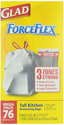 - Title : Glad ForceFlex Tall Kitchen Drawstring Trash Bags, 13 Gallon, 76 Count