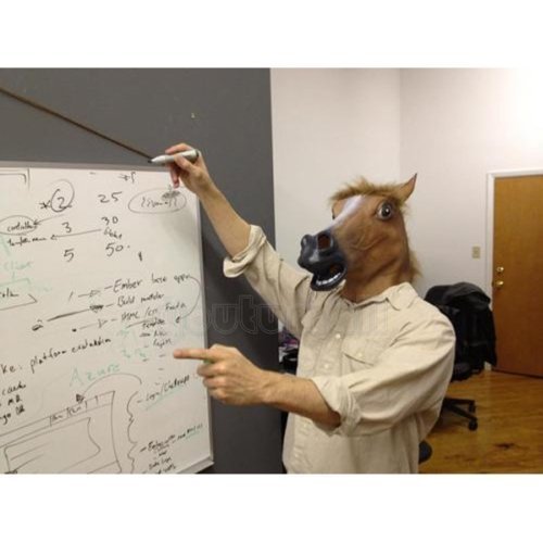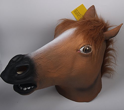 With eyes, mouth and teeth, nostrils and brown fur mane, see through the mask's mouth and the nose holes