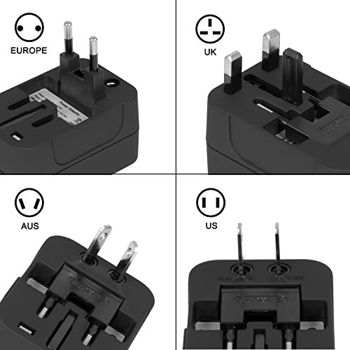 ➹WORLDWIDE CHARGING - This Travel Adapter Cover more than 150 Countries with US/EU/UK/AU plugs. It works in Canada, Russia, Asia, Central America, South America and the Middle East to name a few.