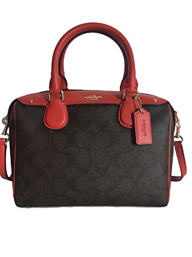 -. Title : Coach Signature Mini Bennett Crossbody Satchel In Brown / Carmine