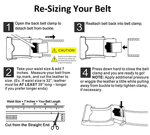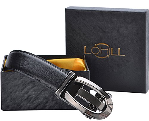 Binding : Apparel Product Description Ratchet Belt with No more holes Comfortable fit Fashion design Custom size Comfortable Fit Custom Size >Ratchet Belt provides enough adjustments for a superb comfortable fit.The belt looks better without the holes. >Easy removable buckle allows you to cut the belt to your ideal size to give a primmer and custom tailored appearance! Durable Buckle Sturdy Stitching >We choose high quality metal buckle for durability.Our buckle has high resistance to rust,corrosion and tarnishing, which will be shiny as a new one even years later. >While the hardware is durable enough, stitching also needs to be sturdy to last for a long time. We uses streamlined doubled stitching in every joints in our belts. Supple Leather Professional Workmanship >Our belt is made of Genuine Leather, which feels luxury, comfortable and can last long time. >To maintain the leather, we should keep it away from sharp items, oil, chemicals, humidity and heat source. Clean it with dry soft cloth when got stains. Timeless Style >This is exremely gorgeous and timeless with super function for both of jeans and dress pants. What's in the package? >The package comes with nice gift box, which include the leather strap,and removable Buckle and A Pick(a small Guitar Pick,use to pick the buckle). Lohill Customer Service Lohill sole purpose is to provide our customers with our outstanding items and a wonderful shopping experience. We fully stand behind our products and we're always ready to provide assistance. If any questions or need help, please reach out to us and we'll attempt to resolve any issues,Your satisfaction is guaranteed.