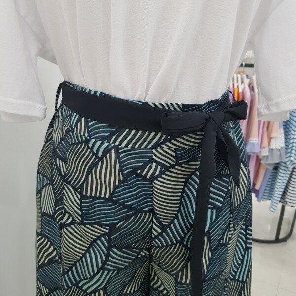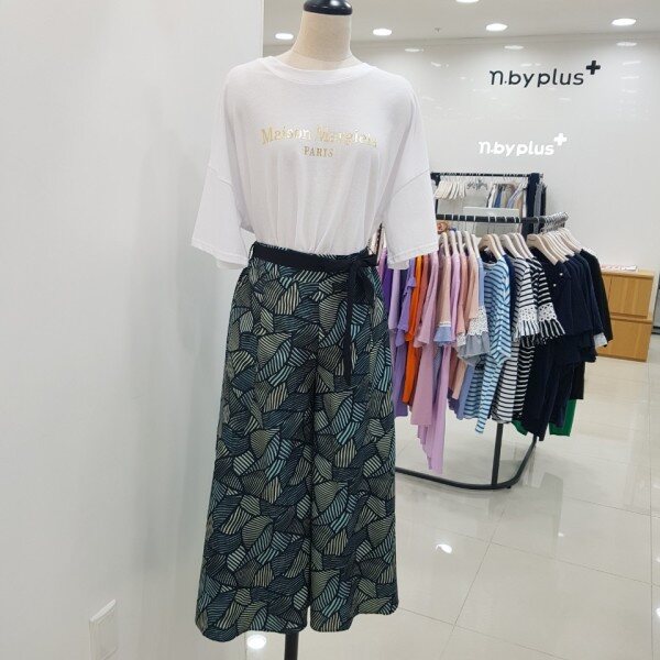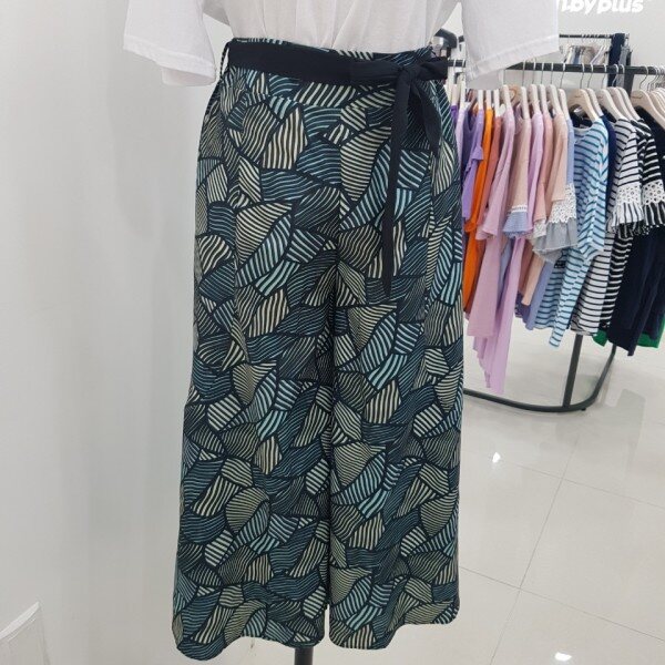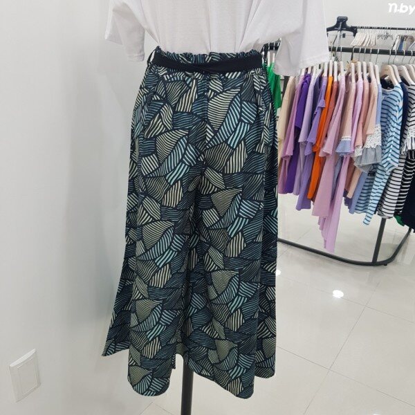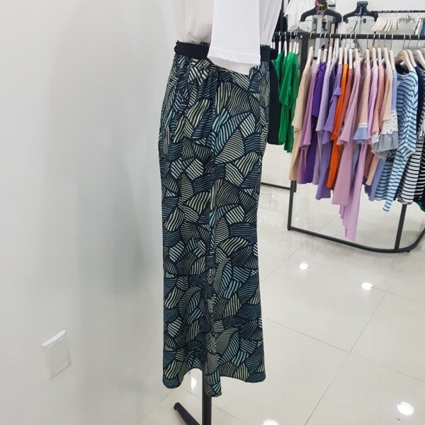 독특한 패턴으로 눈길을 사로잡는 와이드 팬츠입니다.