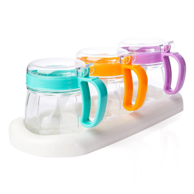 Quality glass body, health and environmental protection, which spices glance, easy to find, with a spoon, push the lid, open lid, easy close.