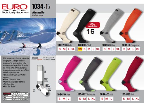 -. Binding : Apparel -. Brand : Eurosock -. Color : White -. Department : mens -. Feature : 100% Micro,Micro is a hollow core micro denier fiber that keeps feet dry and comfortable / Ultra flat seam toe pocket closures are constructed to give the user a basically seamless toe that improves fit and elimiates pressure points with anatomical padding specifically designed to fit a skiers needs / Ribbed cuffs are the finished tops that insures the sock stays up and fits comfortably without pressure points / machine wash and dry -. Label : TravelSox -. Manufacturer : TravelSox -. Model : OLD -. MPN : 1034-PUR-L -. PartNumber : 1034-PUR-L -. ProductGroup : Apparel -. ProductTypeName : SOCKSHOSIERY -. Publisher : TravelSox -. SKU : 1012 -. Studio : TravelSox -. Title : Eurosocks 1034 Ski Superlite Performance OTC Ski Socks-Pair