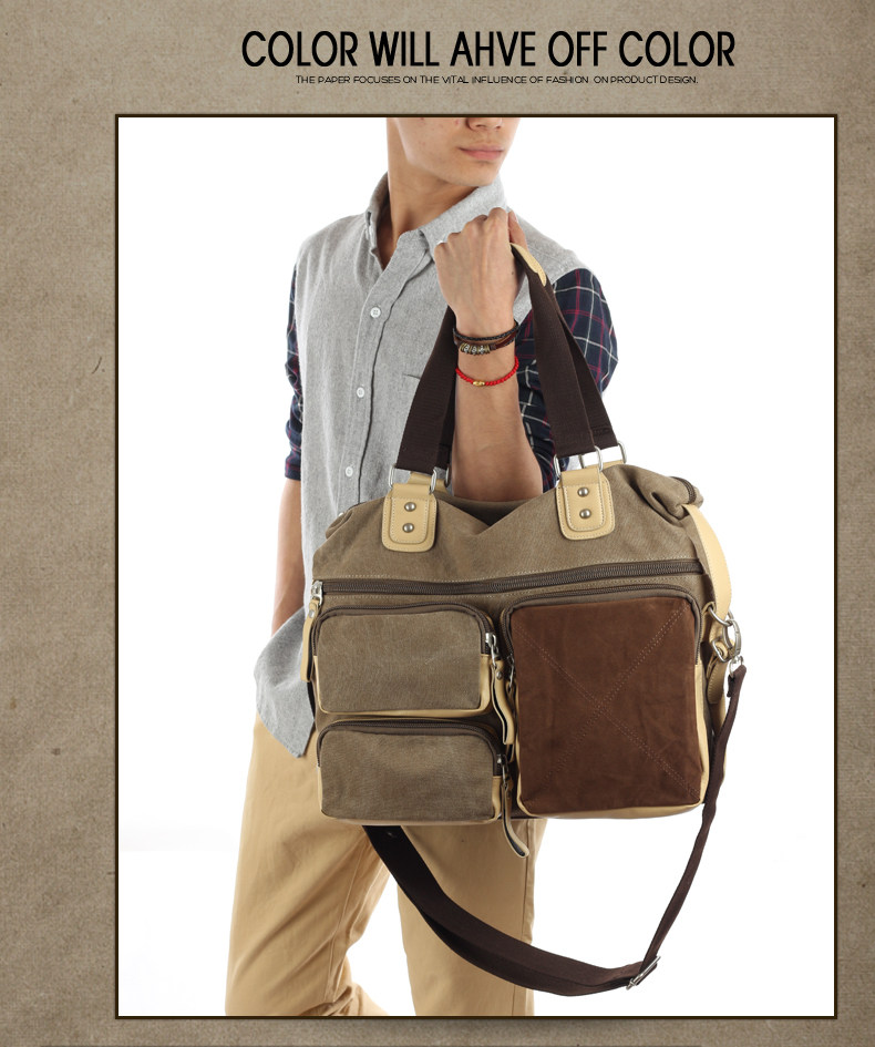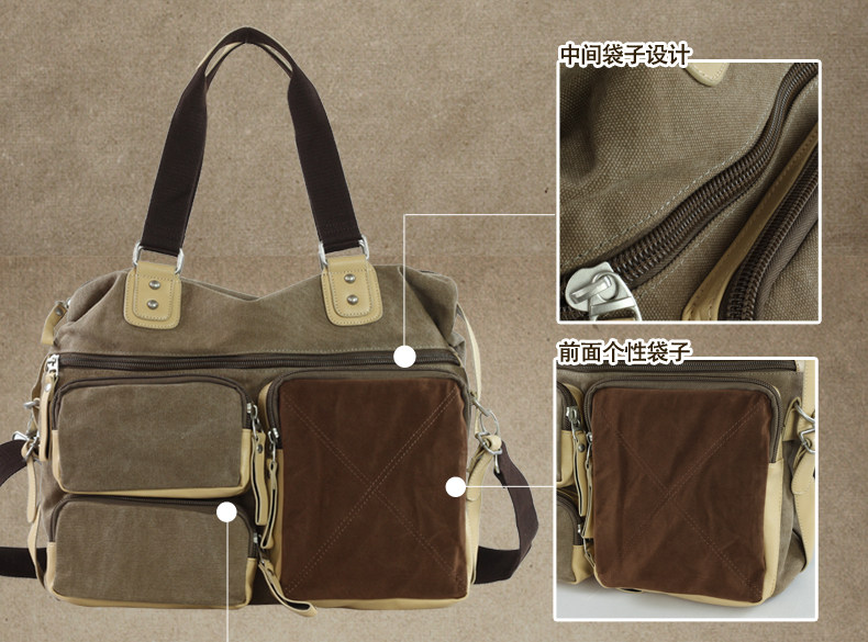 韩版休闲帆布男包 男士手提包单肩包斜挎包 出差旅行包大包 潮