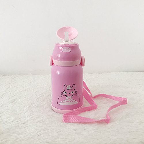 Created Totora Vacuum Cup,Keep Cold And Hot,Children Stainles Steel Bottle With A Straw,Students Bottle Outdoor/Indoor (Pink(With Straps,12.85OZ))