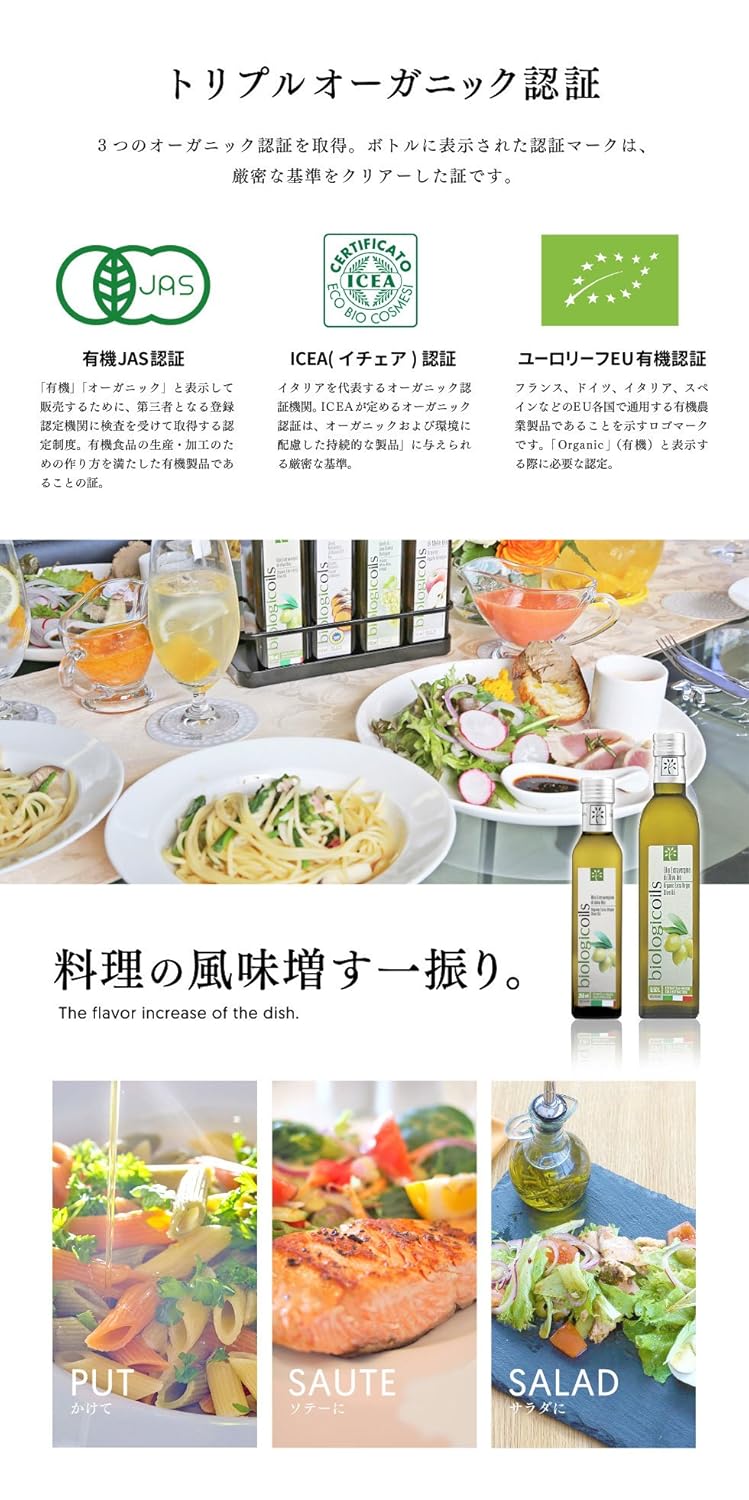 原材料:有機食用オリーブ油 内容量:458g カロリー:900Kcal 商品サイズ(高さx奥行x幅):2.7mm×0.56000000000000005mm×0.56000000000000005mm