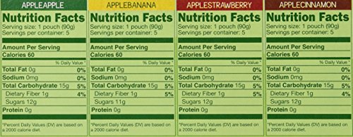 This variety pack includes 5 organic apple, 5 organic banana, 5 organic strawberry and 5 organic cinnamon GoGo squeeze pouches.